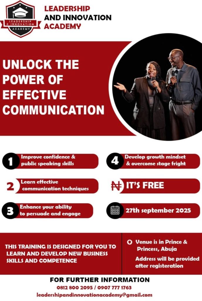 Don’t miss our FREE Communication Masterclass on 27th September 2025 at 10 AM at Prince & Princess, Abuja.