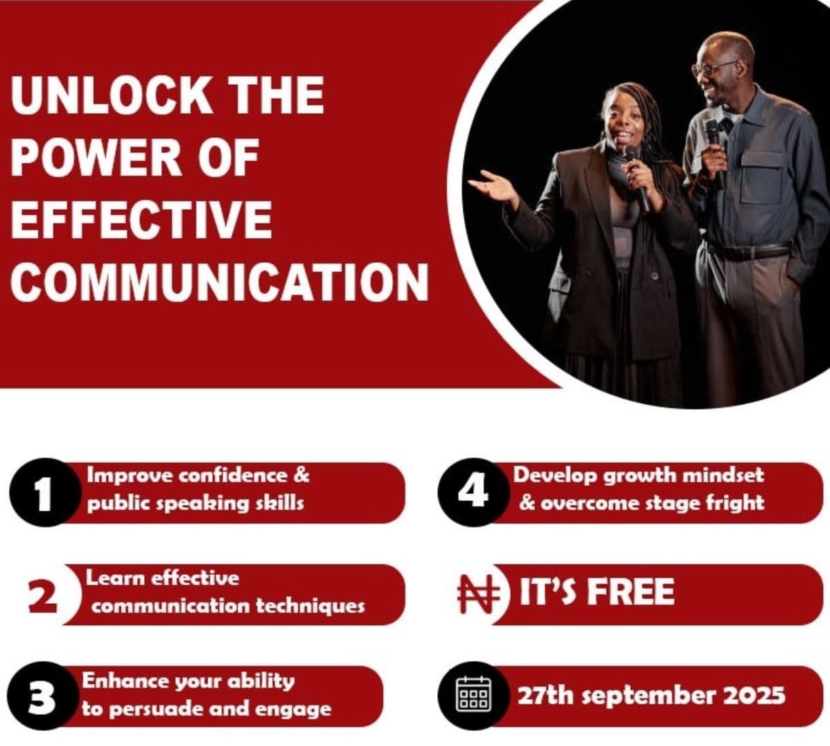 Don’t miss our FREE Communication Masterclass on 27th September 2025 at 10 AM at Prince & Princess, Abuja.