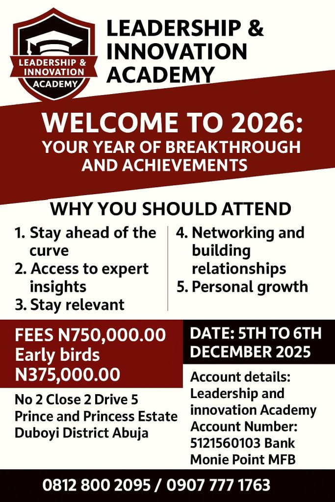 📍 Venue: No. 2 Drive 2, Close 5, Second Gate, Prince and Princess Estate, Abuja